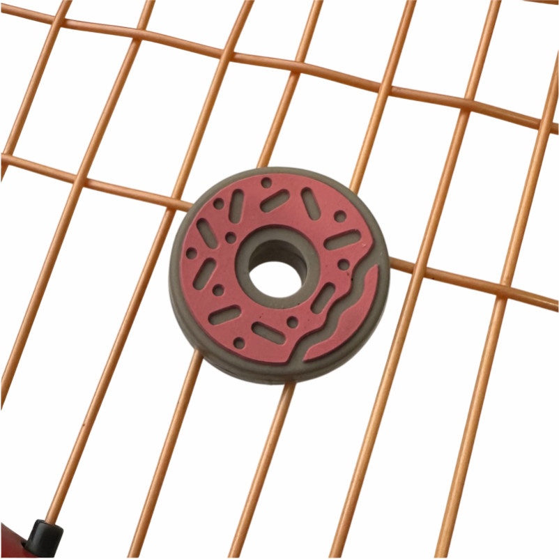 Antivibrador em formato de donuts, feito em silicone resistente. Reduz vibrações das cordas, absorve impactos e garante mais conforto nas jogadas, além de dar um toque divertido à sua raquete.