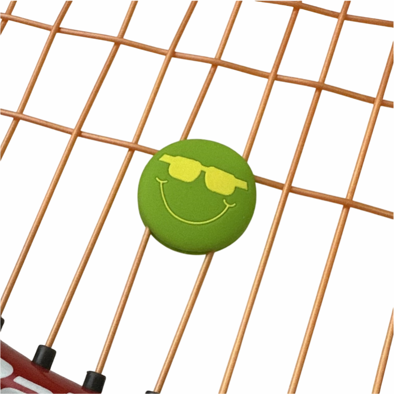 Antivibrador em formato de emoji, feito em silicone resistente. Reduz vibrações das cordas, absorve impactos e garante mais conforto nas jogadas, além de dar um toque divertido à sua raquete.