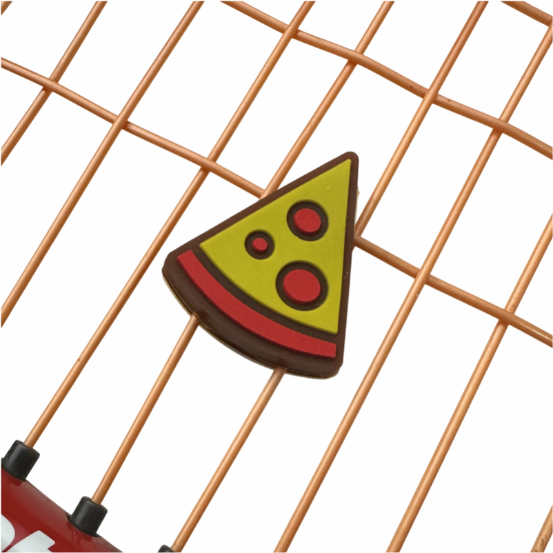 Com um design divertido em formato de pizza, além da funcionalidade, ele traz estilo e personalidade para a sua raquete. Fácil de aplicar, basta encaixá-lo entre as cordas principais, logo acima do coração da raquete.