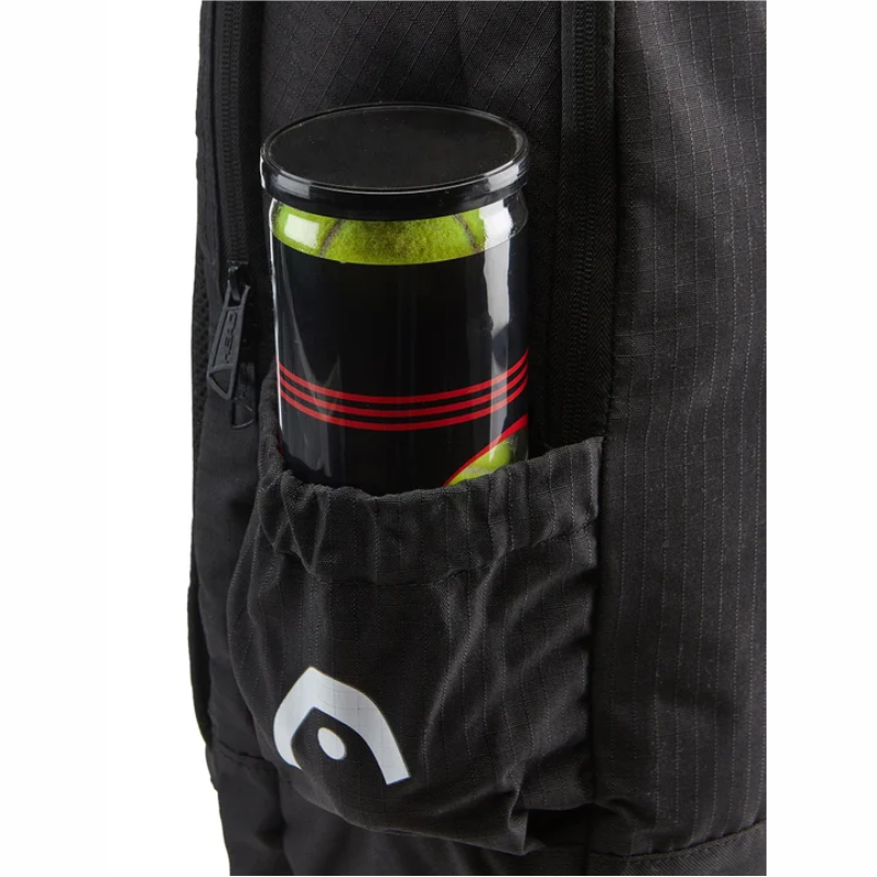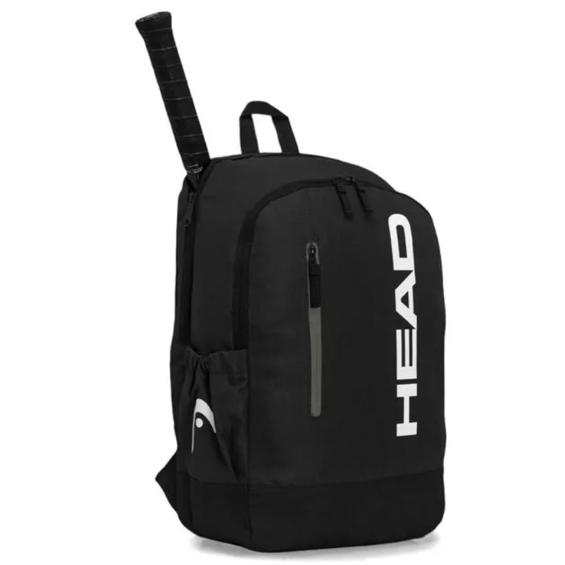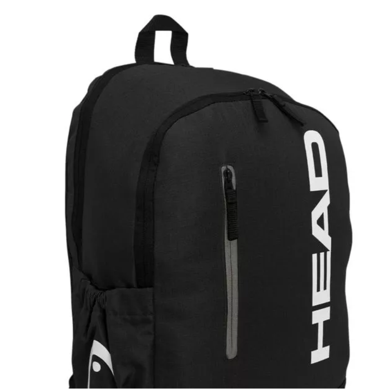 Detalhes: Um compartimento para raquete e outro amplo; bolso frontal com zíper; dois bolsos laterais em mesh; logotipo Head estampado na frente; alças acolchoadas e ajustáveis;