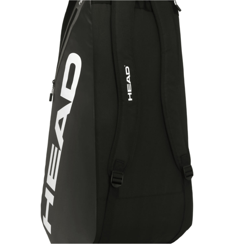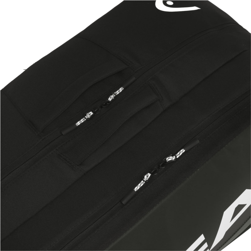 Fabricada com materiais resistentes (70% poliéster e 30% PU), a raqueteira une durabilidade e leveza. O design moderno em preto com o logo HEAD em destaque traz um visual esportivo e marcante.