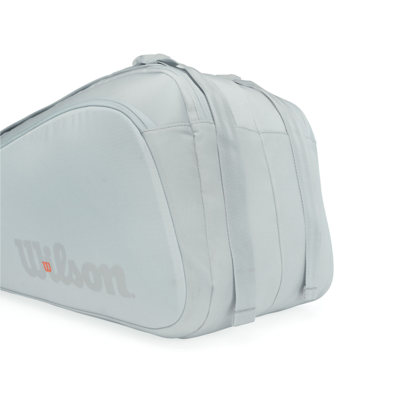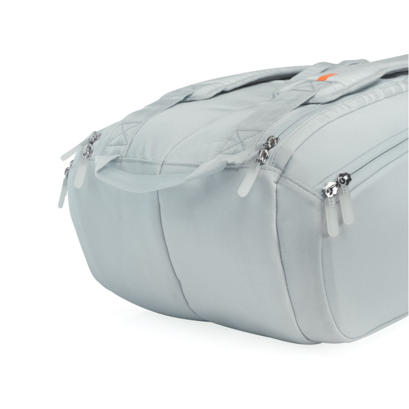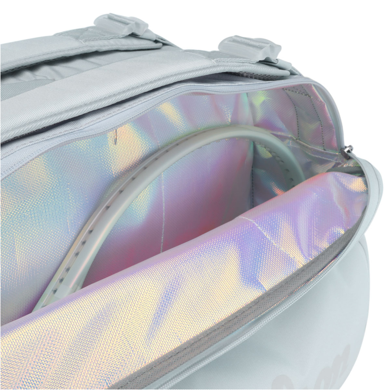 Esta bolsa de desempenho da Wilson tem o apelo da nova linha Shift, com um design de prisma ártico que combina com a raquete de desempenho. Há espaço suficiente para até nove raquetes nos dois compartimentos principais, forrados com Thermoguard para proteger suas raquetes de tênis contra temperaturas extremas. Você pode guardar equipamentos extras, como bolas e grips, nos grandes bolsos externos. A bolsa é reforçada nas laterais e vem com um sistema de transporte duplo.